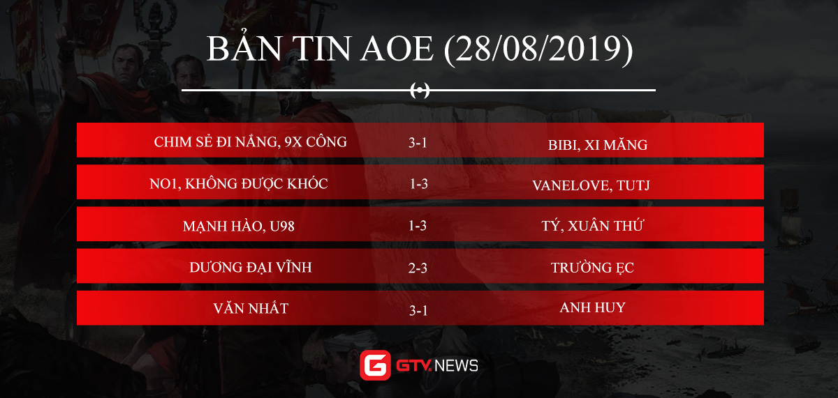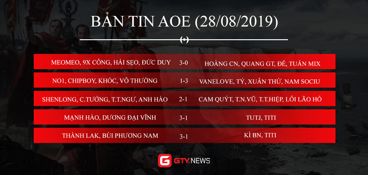 GameTV trân trọng gửi tới độc giả Bản tin AoE được cập nhật hàng ngày, cung cấp lịch và kết quả thi đấu, đồng thời mang đến cho quý vị những tin tức thú vị trong cộng đồng AoE Việt Nam.
