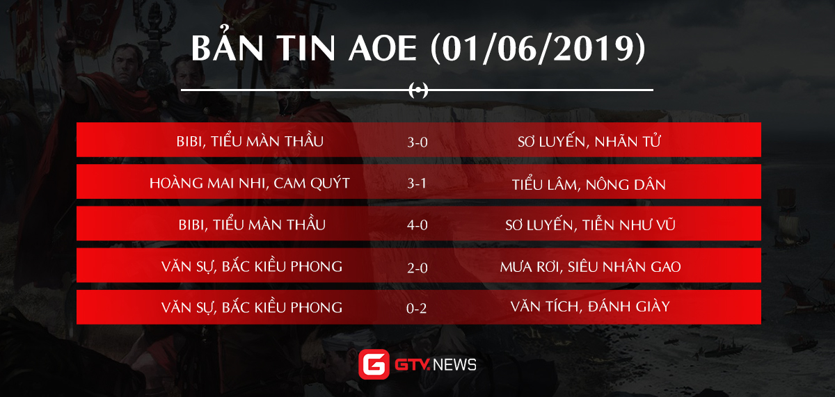 GameTV trân trọng gửi tới độc giả Bản tin AoE được cập nhật hàng ngày, cung cấp lịch và kết quả thi đấu, đồng thời mang đến cho quý vị những tin tức thú vị trong cộng đồng AoE Việt Nam.