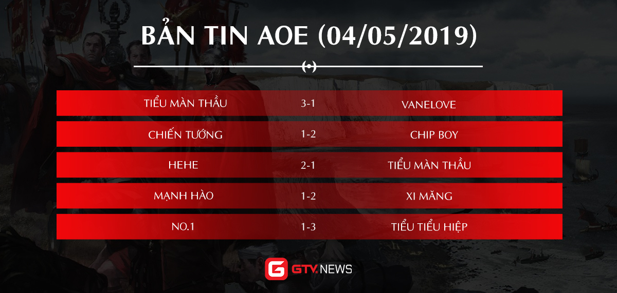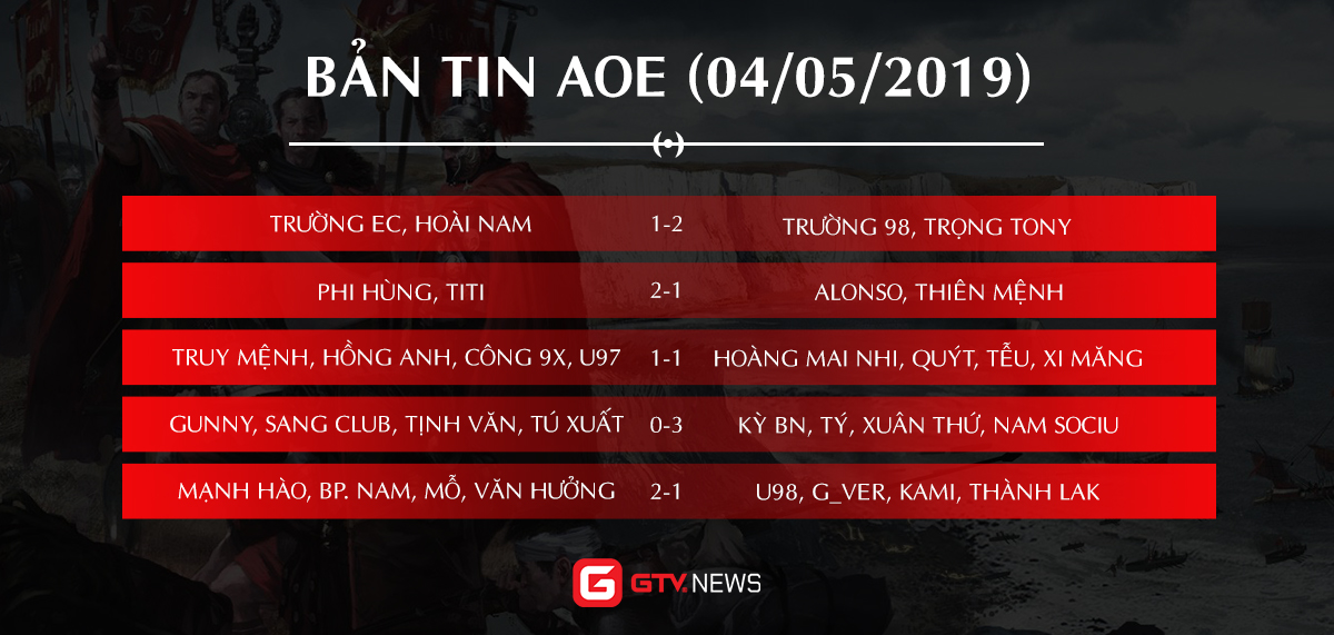 GameTV trân trọng gửi tới độc giả Bản tin AoE được cập nhật hàng ngày, cung cấp lịch và kết quả thi đấu, đồng thời mang đến cho quý vị những tin tức thú vị trong cộng đồng AoE Việt Nam.