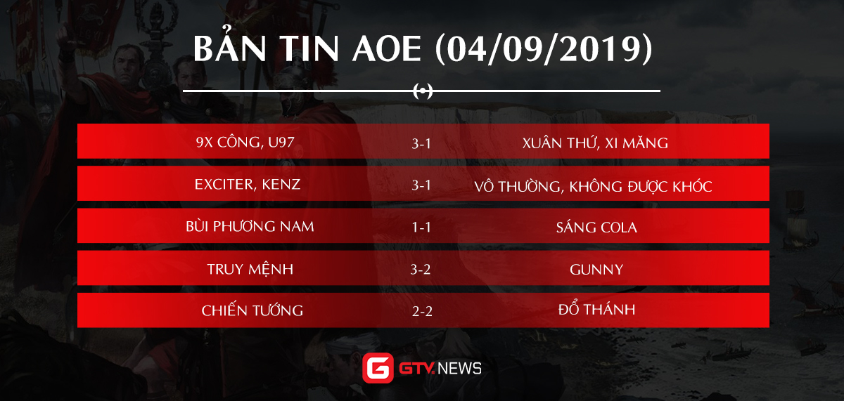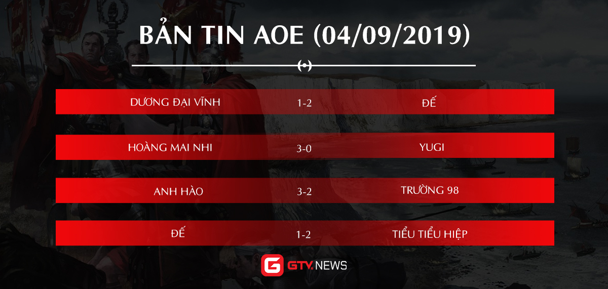 GameTV trân trọng gửi tới độc giả Bản tin AoE được cập nhật hàng ngày, cung cấp lịch và kết quả thi đấu, đồng thời mang đến cho quý vị những tin tức thú vị trong cộng đồng AoE Việt Nam.