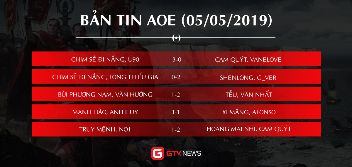 GameTV trân trọng gửi tới độc giả Bản tin AoE được cập nhật hàng ngày, cung cấp lịch và kết quả thi đấu, đồng thời mang đến cho quý vị những tin tức thú vị trong cộng đồng AoE Việt Nam.