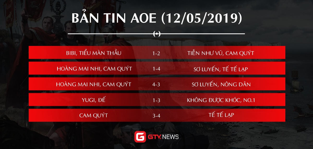 GameTV trân trọng gửi tới độc giả Bản tin AoE được cập nhật hàng ngày, cung cấp lịch và kết quả thi đấu, đồng thời mang đến cho quý vị những tin tức thú vị trong cộng đồng AoE Việt Nam.