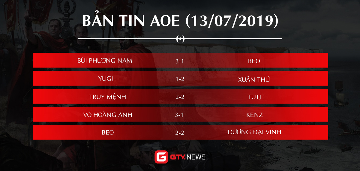 GameTV trân trọng gửi tới độc giả Bản tin AoE được cập nhật hàng ngày, cung cấp lịch và kết quả thi đấu, đồng thời mang đến cho quý vị những tin tức thú vị trong cộng đồng AoE Việt Nam.