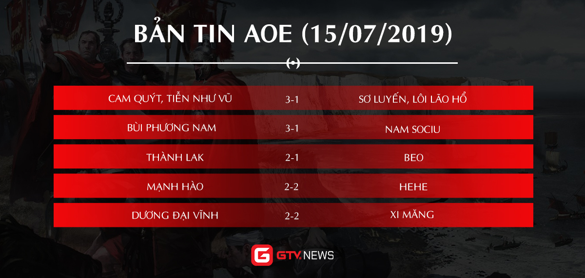 GameTV trân trọng gửi tới độc giả Bản tin AoE được cập nhật hàng ngày, cung cấp lịch và kết quả thi đấu, đồng thời mang đến cho quý vị những tin tức thú vị trong cộng đồng AoE Việt Nam.