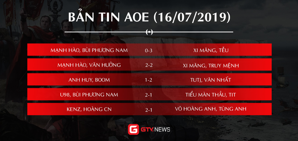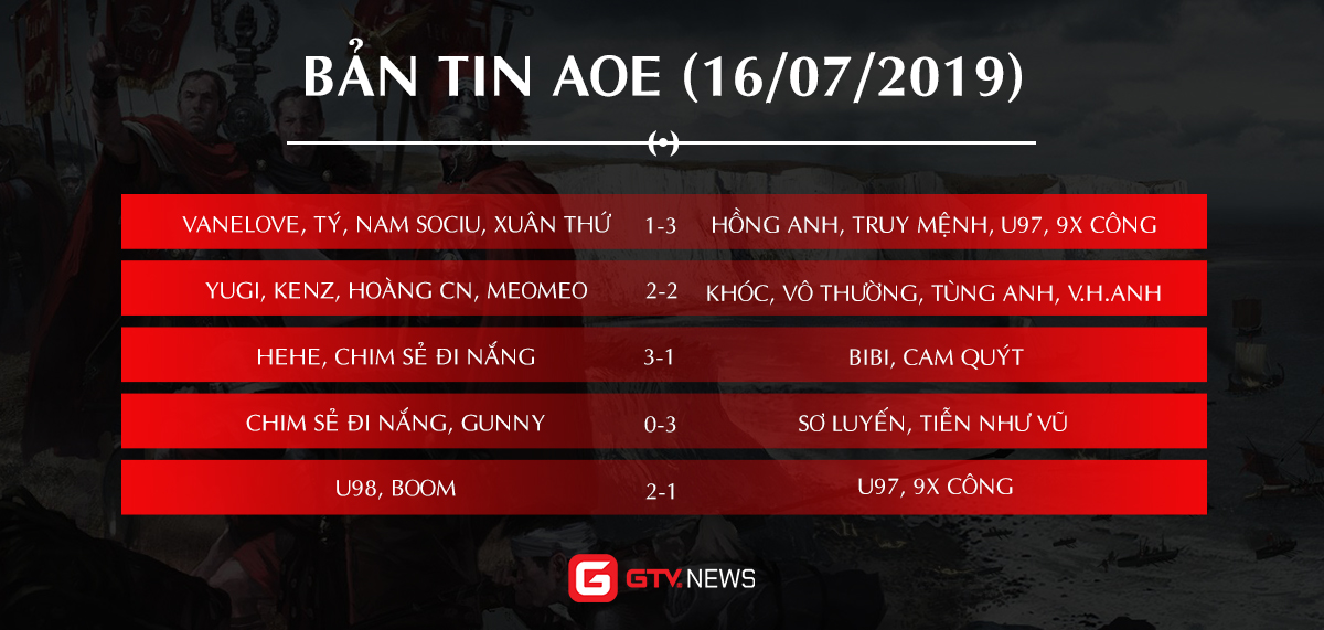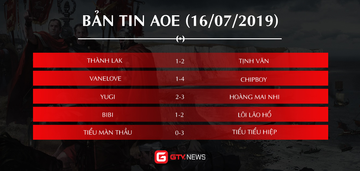 GameTV trân trọng gửi tới độc giả Bản tin AoE được cập nhật hàng ngày, cung cấp lịch và kết quả thi đấu, đồng thời mang đến cho quý vị những tin tức thú vị trong cộng đồng AoE Việt Nam.
