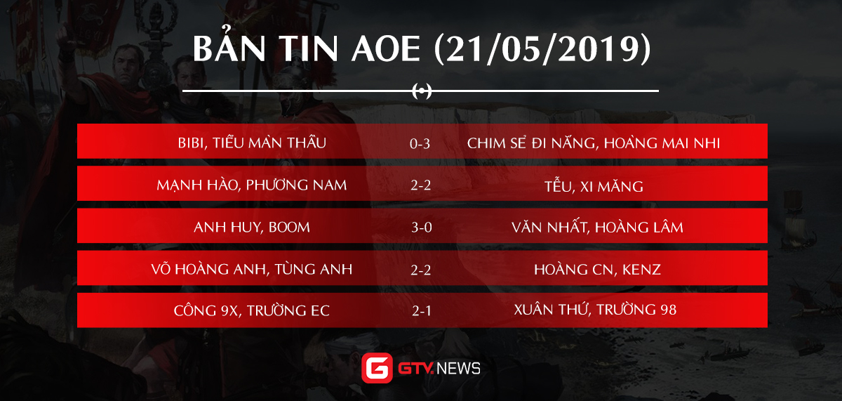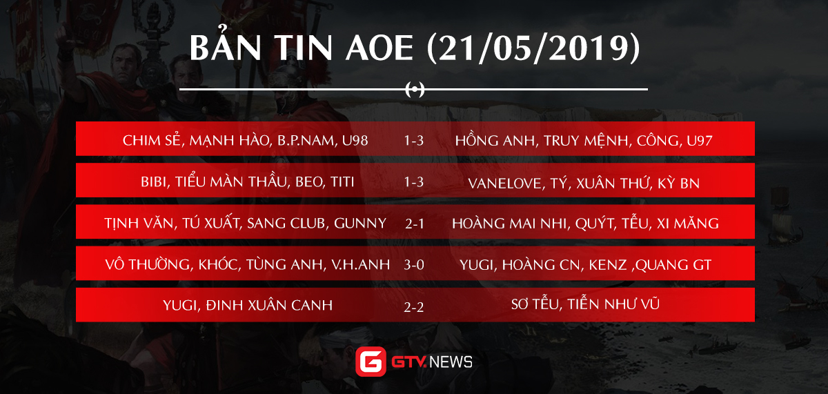 GameTV trân trọng gửi tới độc giả Bản tin AoE được cập nhật hàng ngày, cung cấp lịch và kết quả thi đấu, đồng thời mang đến cho quý vị những tin tức thú vị trong cộng đồng AoE Việt Nam.