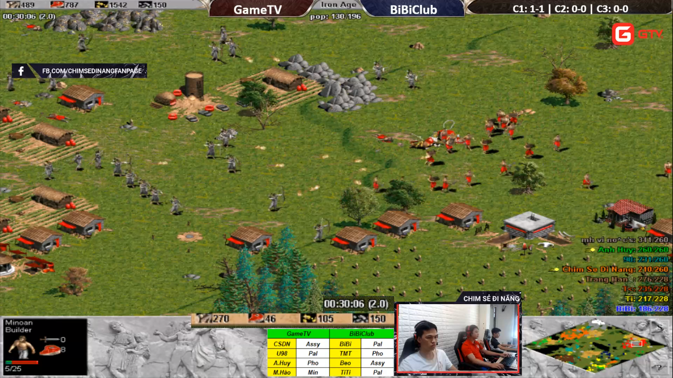 Chiều nay, team AoE GameTV tiếp tục có cuộc đối đầu với BiBiClub trong thể loại 4vs4 Random. Đội hình ra sân bên phía GameTV bao gồm: Chim Sẻ Đi Nắng, U98, Mạnh Hào, Anh Huy; bên phía BiBiClub là BiBi, Tiểu Màn Thầu, Beo, TiTi. Đây chưa phải là đội hình mạnh nhất của 2 bên khi Anh Huy và TiTi chưa có mặt trong đội hình 1.
