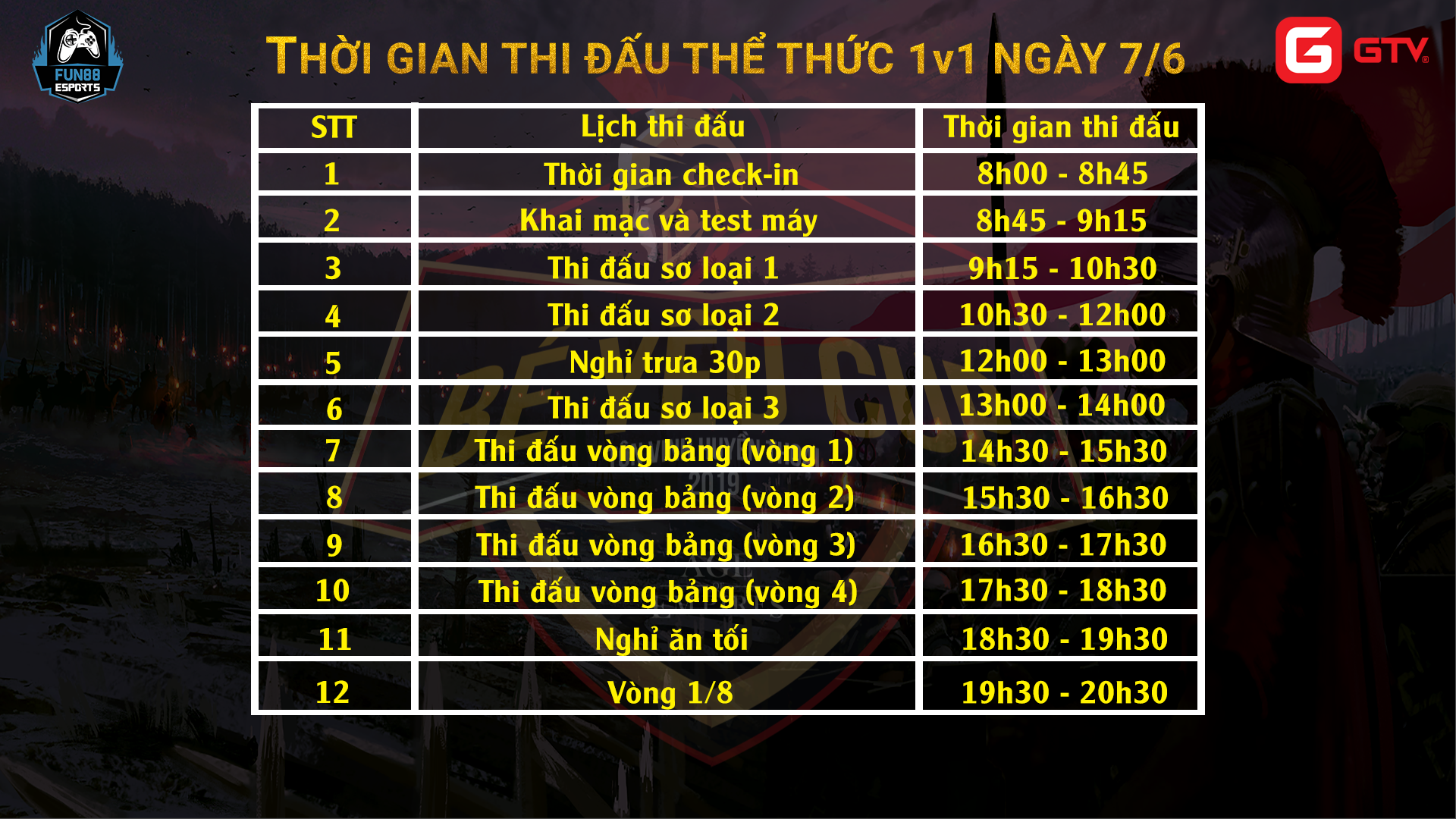 Theo đó ngày thi đấu các vòng sơ loại của 3 thể loại sẽ bắt đầu từ ngày 07/06 đến ngày 09/06. Ngoài ra các game thủ chú ý, các vòng đấu sơ loại sẽ thi đấu loại trực tiếp chạm 3.