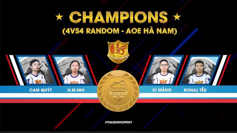 Trận Chung kết 4v4 Random là một cuộc chiến căng thẳng và nghẹt thở. Tỷ số luôn hai bên được san bằng và rượt đuổi sát nút, GameTV và Hà Nam đã cống hiến cho khán giả những trận đấu thực sự mãn nhãn. Với quyết tâm cực lớn cho mùa giải năm nay, đoàn quân của AoE Hà Nam đã thi đấu hết mình với sự tỏa sáng đúng lúc của các cá nhân, qua đó giành chiến thắng đầy cảm xúc 5-4 trước GameTV và chính thức lên ngôi vương nội dung 4v4 Random tại AoE Thái Bình Open 7.