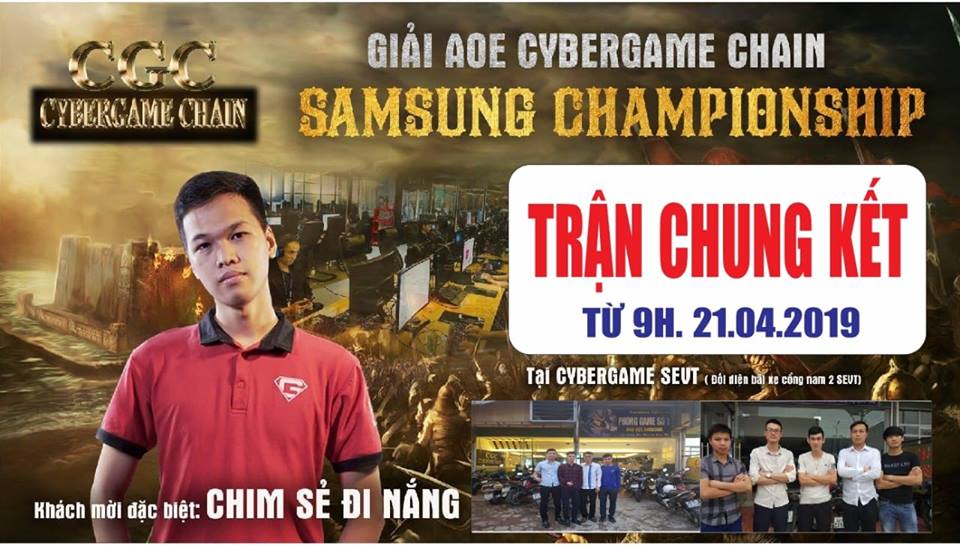 Đặc biệt, vào ngày 21/04, diễn ra vòng Chung kết Tổng của giải đấu người hâm mộ sẽ có cơ hội gặp gỡ với game thủ AoE hàng đầu hiện nay là đội trưởng GameTV - Chim Sẻ Đi Nắng. Anh sẽ cùng các khán giả giao lưu, chia sẻ về những câu chuyện xung quanh bộ môn chiến thuật Đế Chế. Đồng thời, người hâm mộ sẽ được trực tiếp xem Chim Sẻ Đi Nắng thi đấu cùng Nhà Vô địch AoE Cybergame Chain - Samsung Championship. Đây sẽ là cơ hội cho các game thủ thử sức mình khi đối đầu với game thủ chuyên nghiệp và cũng là cơ hội để học hỏi, giao lưu với thần tượng Chim Sẻ - Nguyễn Đức Bình.