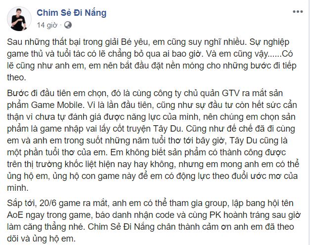 Trải lòng về vấn đề này, Chim Sẻ Đi Nắng đã đăng tải một status về những dự định sắp tới và mong nhận được sự ủng hộ của fan hâm mộ và cộng đồng.
