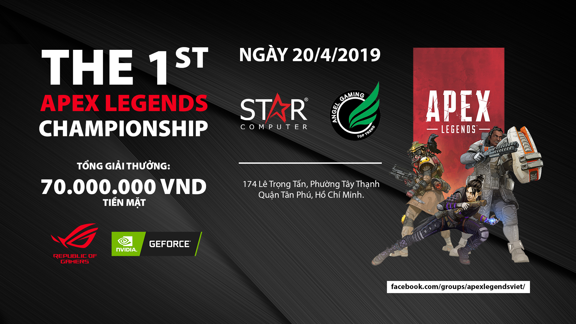 Tiếp nối thành công giải đấu Apex legends đầu tiên tại Hà Nội, vào ngày 20/4/2019, Giải đấu với quy mô tương tự sẽ diễn ra hứa hẹn mang đến một sân chơi chuyên nghiệp và đẳng cấp dành cho game thủ tại TP HCM.