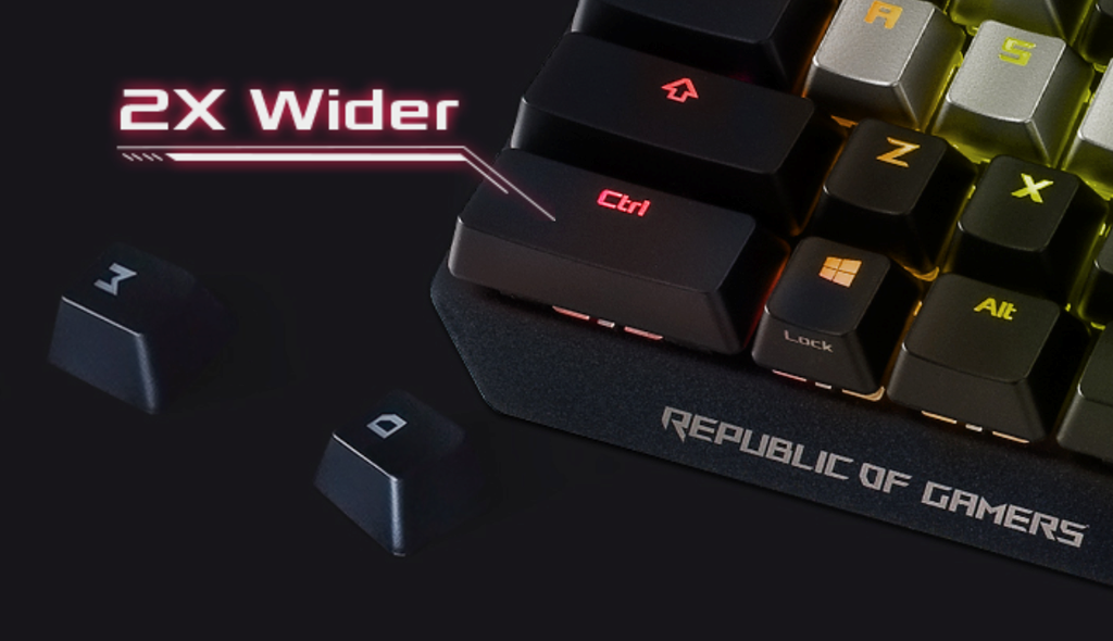 Phím Control (Ctrl) là một trong những phím quan trọng nhất trong các game bắn súng hiện đại. Thế nên nhóm nghiên cứu và phát triển ROG đã phải khảo sát cách chơi game FPS của rất nhiều game thủ và phát hiện ra rằng việc tăng kích thước cho phím này cũng như rút gọn kích thước phím windows sẽ giúp cải thiện độ chính xác cho các thao tác.
