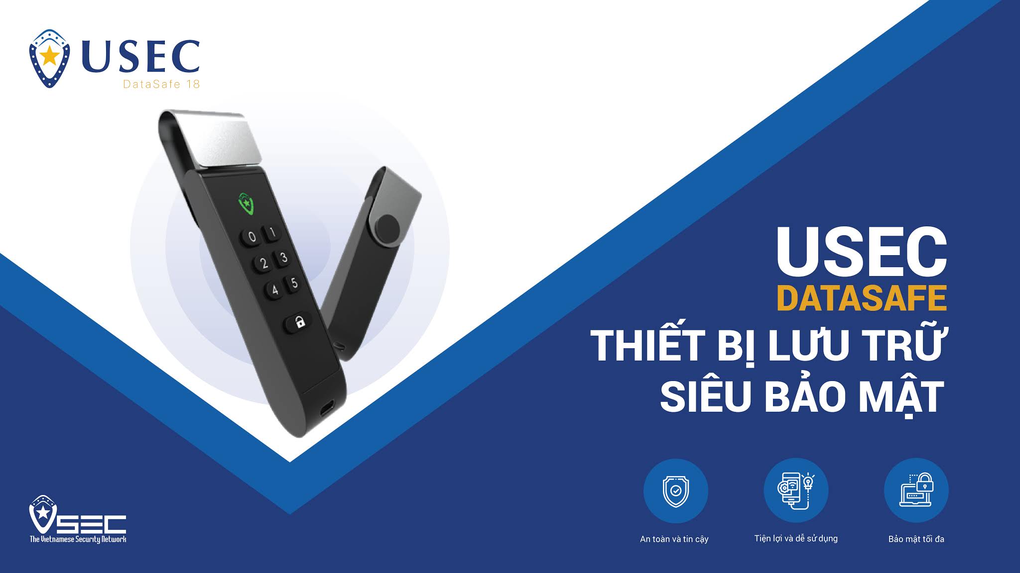 Vào ngày 17/4/2019 vừa qua, USEC DataSafe - Thiết bị lưu trữ siêu bảo mật đã chính thức được ra mắt tại sự kiện Việt Nam Security Summit 2019 với sự đồng hành của kĩ sư Hà Văn Nam thông qua chủ đề "Quy trình sinh khóa và quản lý khóa cho thiết bị bảo mật". Cũng trong khuôn khổ của sự kiện này, những tín đồ công nghệ và người tham dự đã được trải nghiệm sản phẩm USEC DataSafe miễn phí.