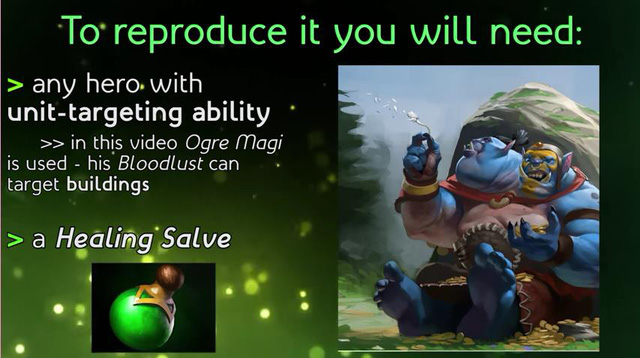 Mới đây, trên Reddit Dota 2, một tài khoản 8213_collections đã đăng một bài báo nói rằng anh ta đã phát hiện ra nếu Ogre Magi sở hữu cho mình Dragon Lance thì khi sử dụng Bloodlust lên Tower, Attack Range của trụ cũng sẽ được nâng tầm. Thậm chí, anh chàng này còn quay cả Video để chứng minh cho sự chính xác của việc này.