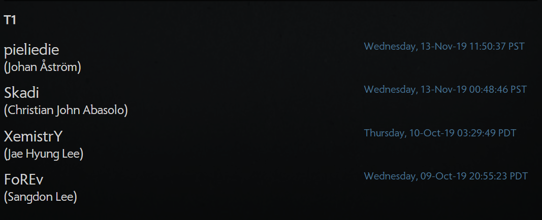Tuy nhiên, đội tuyển Dota 2 Hàn Quốc vẫn tiếp tục về chót dù cho đã thực hiện những thay đổi nhân sự để gia tăng chất lượng đội hình. Trong hoàn cảnh vòng loại Leipzig Major chỉ còn nửa tháng nữa sẽ diễn ra, T1 đang rơi vào thế tiến thoái lưỡng nan khi thành tích của họ vẫn đang bết bát và những thành viên trẻ thi đấu khá thất vọng. Vì vậy, những người đứng đầu tổ chức đã đưa ra một quyết định khá táo bạo khi mời một Support kì cựu từng vô địch Major dưới màu áo của team Secret là Pieliedie, cùng với đó là Skadilicious - Carry trẻ tuổi người Philippines đã từng thi đấu cho Neon Esports và Lowkey Esports.