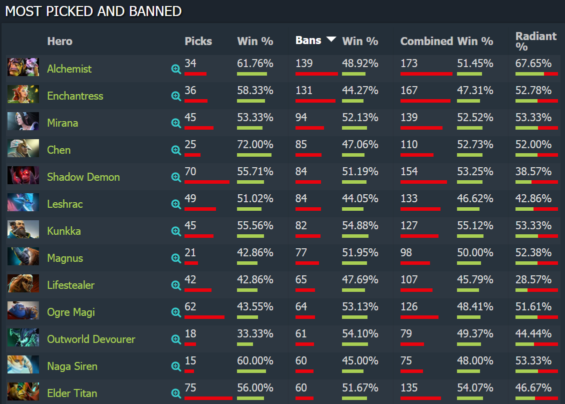 The International 2019 quả là đã đem cho chúng ta cực kì nhiều bất ngờ khi Alchemist, một hero vốn được quan tâm ở mức bình thường ở những giải đấu trước đó, bỗng nổi lên như đối tượng nguy hiểm số 1 của giải đấu. 99 lần là số lần Alchemist đã bị "bay màu" khỏi trận đấu, và chỉ 27 lần được lựa chọn đã đạt được tỉ lệ thắng lên tới gần 60% đã cho thấy nhà giả kim thuật của thế giới Dota 2 đang sở hữu sức mạnh đáng sợ như thế nào.