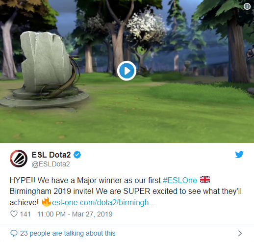 Tấm vé mời trực tiếp đầu tiên của ESL One Birmingham 2019 đã xuất hiện.