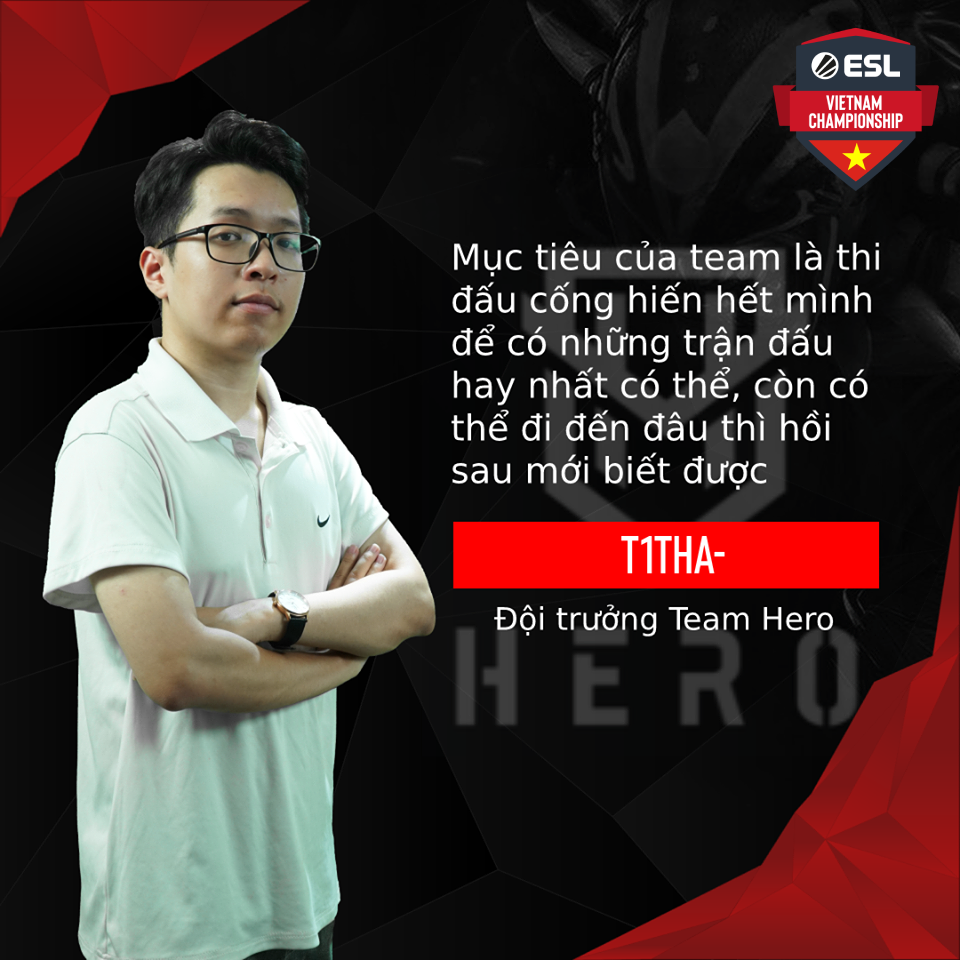 Cách đây 2 tháng, game thủ sinh năm đã tham dự mùa 2 của giải đấu ESL Vietnam dưới màu áo của team Hero. Nhưng đáng tiếc thay, đội của T1tha- đã không đạt được kết quả tốt sau khi giải đấu kết thúc khi chỉ cán đích ở vị trí thứ 8. Chắc chắn sau thất bại này, khao khát chiến thắng bên trong chàng trai này sẽ trỗi dậy một cách mãnh liệt và điều này sẽ được anh chứng minh tại giải đấu GDC 2019 sẽ khởi tranh vào cuối tuần này.