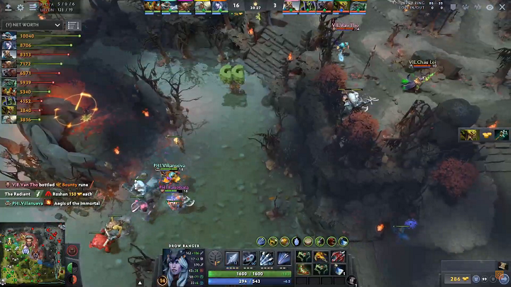 Thế nhưng đại diện của nước chủ nhà vẫn cao tay hơn các tuyển thủ của chúng ta khi đã có những lượt pick vô cùng hợp lý để khắc chế lại sức mạnh của đội hình bên phía 496 Gaming. Với lineup Snowball cực mạnh ở Early Game, đại diện của Việt Nam đã không thể đứng vững trước những màn phản công mãnh liệt của đối thủ. Chỉ sau 20 phút thi đấu đầu tiên, khoảng cách về lượng Networth giữa 2 đội đã được nâng lên tới 6.000 và không ngừng tăng lên theo thời gian.