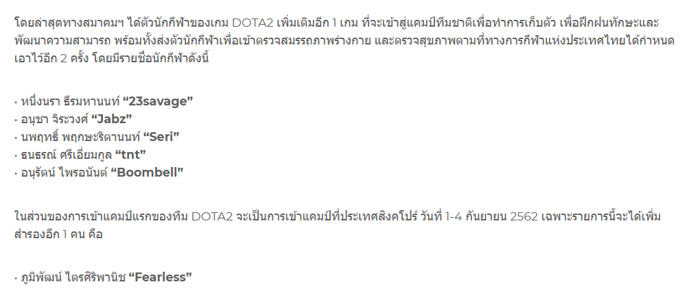 Thái Lan có thể nói là một kì phùng địch thủ với Việt Nam chúng ta trên nhiều lĩnh vực. Từ bóng đá đến xuất khẩu gạo, Việt Nam và Thái Lan luôn cạnh tranh nhau ở những vị trí top đầu. Và có vẻ như ở bộ môn Dota 2, Thái Lan cũng thể hiện sự khao khát chiến thắng cực kì mãnh liệt khi chúng ta nhìn vào dàn hào thủ mà Hiệp hội Thể thao Điện tử Thái Lan đã lựa chọn để tham dự SEA Games 30.