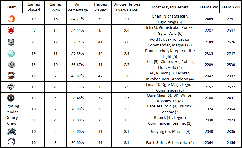 Kết thúc ESL One Hamburg, TNC thi đấu tổng cộng 19 game, trong đó có 16 thắng và 3 thua với tỉ lệ chiến thắng là gần 85%. Trong số 19 trận đấu đã diễn ra, TNC đã lựa chọn 39 Hero khác nhau với 3 pick nổi trội nhất là Chen, Night Stalker và Ogre Magi. Có thể nói rằng các đối thủ khi phải đối mặt với TNC đều tỏ ra khá bối rối trong khâu ban pick, vì cả 5 thành viên đều sở hữu cho mình 1 Signature Hero mà họ phải ban nếu không muốn phải nhận một thất bại. Và nếu ban hết cả 5 Signature Hero này thì TNC vẫn còn đó cực kì nhiều lựa chọn vì họ đâu chỉ có chơi tốt 1 Hero đó. Rõ ràng sự có mặt của Heen trước đây và March hiện tại đã trui rèn những "viên ngọc thô" ở quốc đảo Philippines ngày một trở nên hoàn thiện hơn.