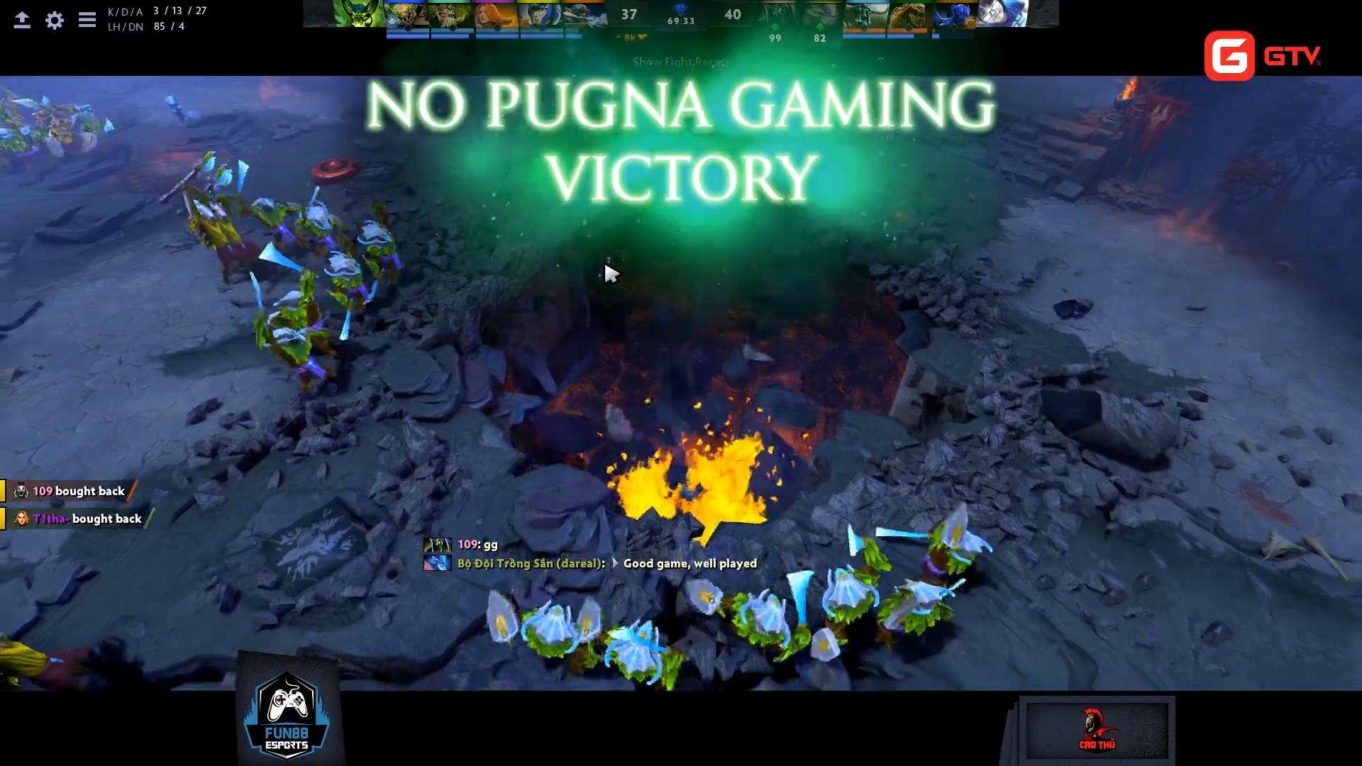 Tại đây, đẳng cấp của những game thủ kì cựu đã lên tiếng khi No Pugna Gaming tỏ ra quá lấn lướt trong cả 2 game đấu đã diễn ra. Họ chỉ mất vỏn vẹn 1 tiếng đồng hồ cho 2 game đấu để có thể ghi tên mình vào vòng playoff của GTV Dota 2 Championship với tư cách nhất bảng B