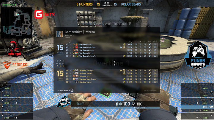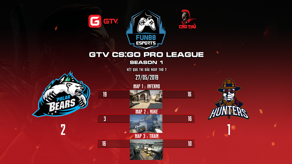 Trong trận chung kết nhánh thắng đầu tiên của GTV CS:GO Pro League Season 1, Polar Bears mặc dù khá vất vả nhưng cũng đã thành công vượt qua 5 Hunters để điền tên mình vào vòng bán kết