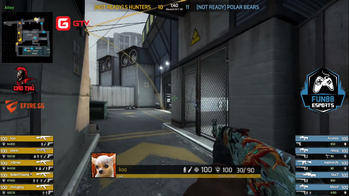 Tại đây, với đà hưng phấn cùng những pha thủ bombsite xuất sắc, Polar Bears vươn lên dẫn trước 17-16. Và có vẻ như việc để đối thủ comeback đã ảnh hưởng đôi chút đến tâm lý các thành viên 5 Hunters, họ để thua ở cả những tình huống mà họ là người có được lợi thế về mặt quân số. Chính vì vậy, không có gì khó hiểu khi Polar Bears kết thúc map thi đấu đầu tiên với tỷ số 19-16.