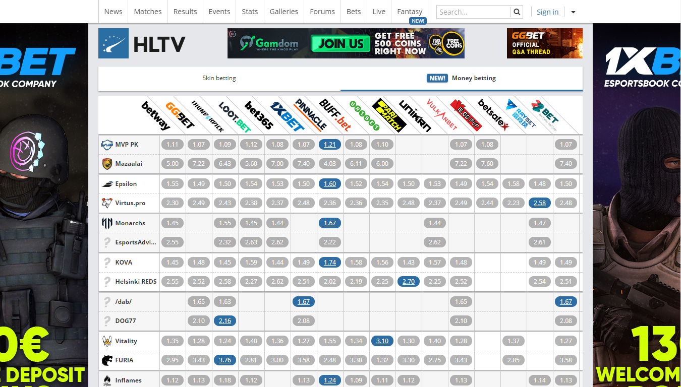 Bên cạnh đó, với các quốc gia đã hợp pháp hóa việc betting, HLTV là trang web số một của giới CS:GO nếu xét về góc độ uy tín. Bạn có thể dễ dàng tìm kiếm tất cả những thông tin về các kèo bet mình cần ở trên website này, thậm chí HLTV còn tổng hợp đầy đủ cho bạn rate bet tại tất cả những web betting khác nhau hiện có.