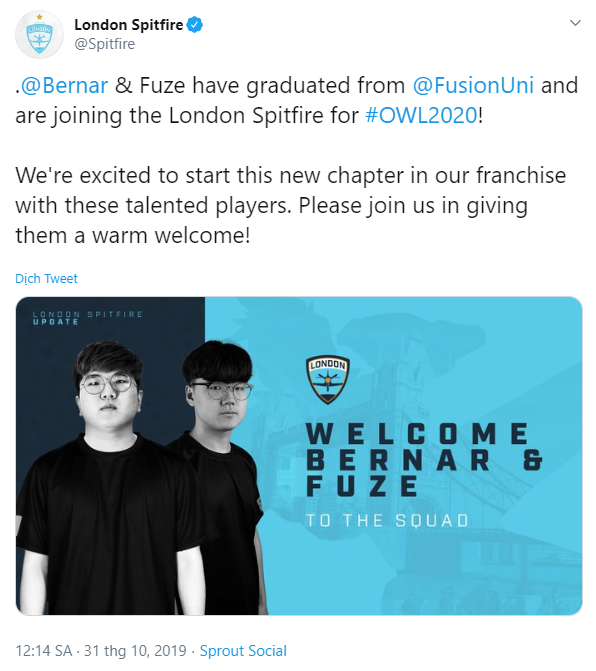 Chỉ vài ngày sau khi Profit và Gesture thông báo sẽ gia nhập Seoul Dynasty và thi đấu tại OWL 2020, Off-tank của London Spitfire là Fury cũng thông báo sẽ rời London để chuyển tới khoác áo Philadelphia Fusion.