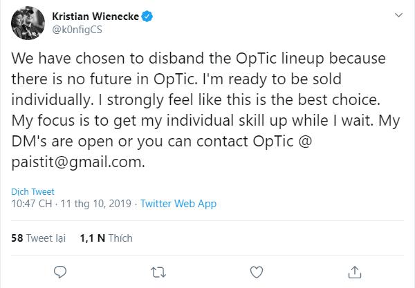 "Tôi đã quyết định tự tìm ra đường đi của mình. Khi tôi tới OpTic, kế hoạch của tất cả là xây dựng một đội hình mạnh và đưa về những tuyển thủ chất lượng. Nhưng OpTic đã bị bán và điều đó đã thay đổi còn chúng tôi thì không thể tự xây dựng một đội hình phù hợp."