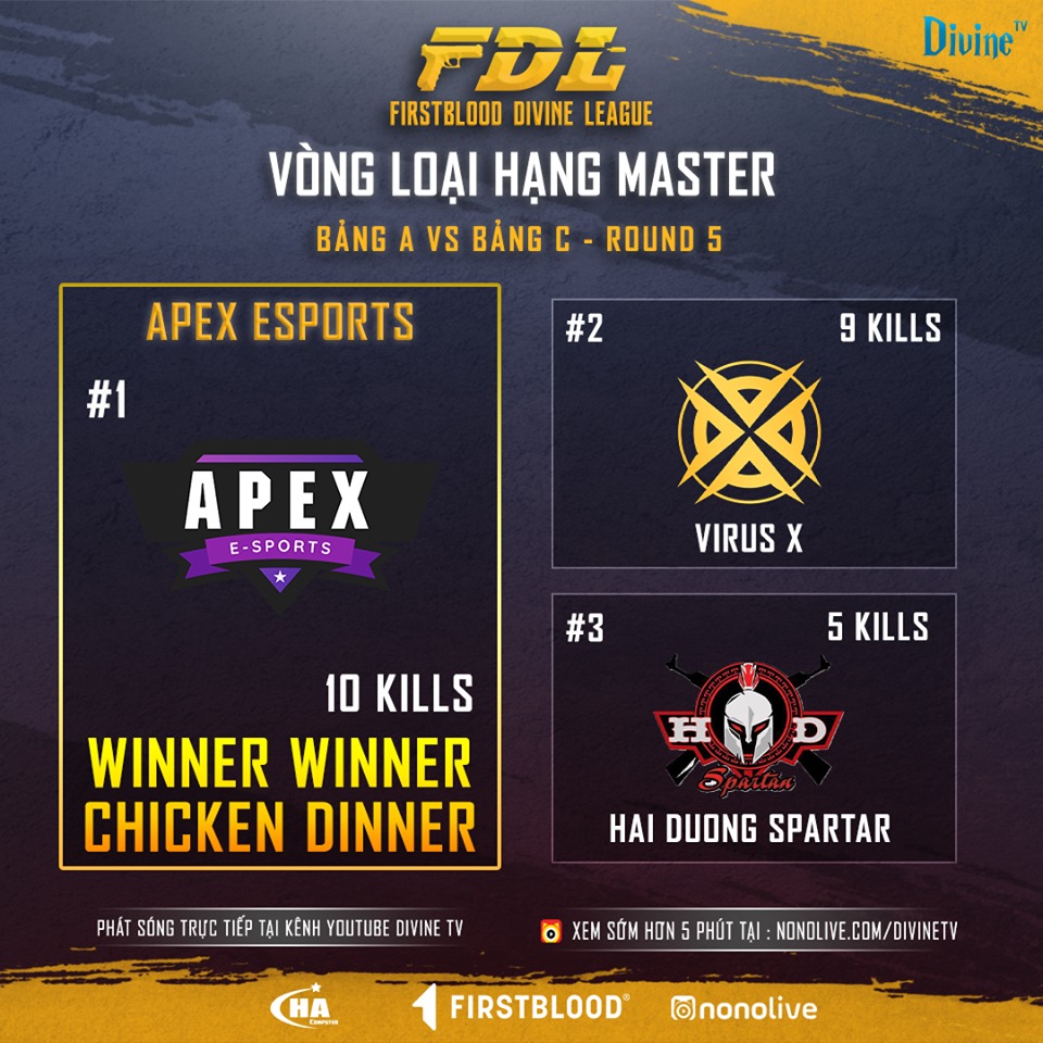 Apex Esports xuất sắc dành top 1 với 10kills và vượt qua Virus X