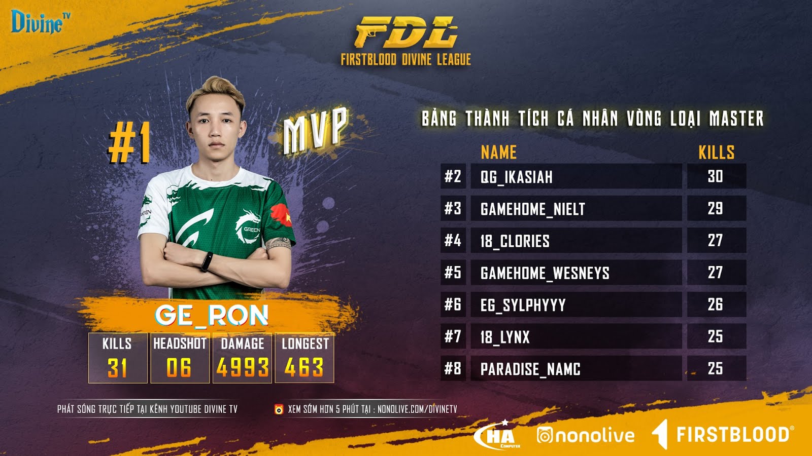 GE_RON đang đứng đầu bảng xếp hạng MVP với tổng cộng 31kills và 4993 damage gây ra