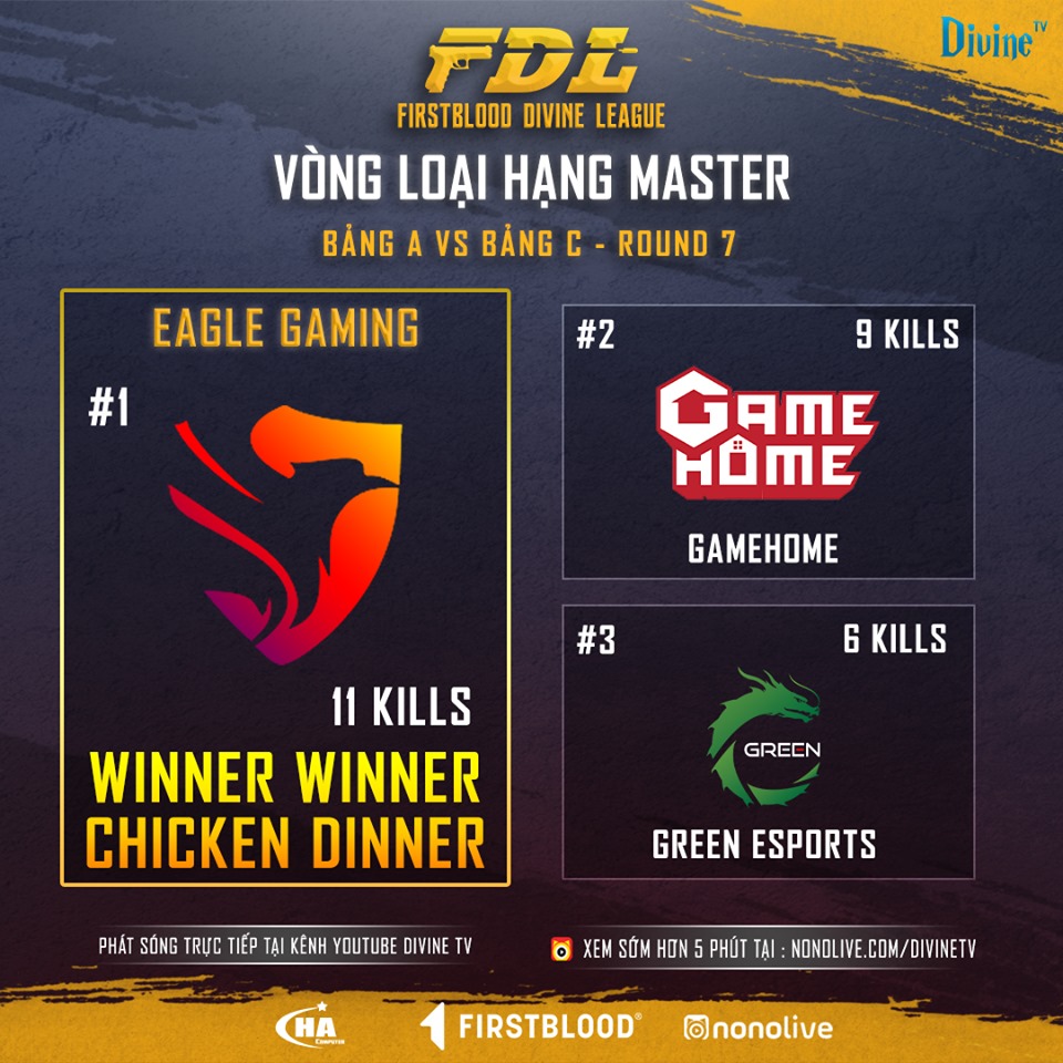 Trong ngày thi đấu hôm qua, Apex Esports, Venus Gaming và Eagle Gaming đã lần lượt có cho mình vị trí top 1 qua 3 trận thi đấu. Eagle Gaming với sự cố gắng của mình trong trận đấu cuối cùng đã xuất sắc vượt qua 2 cái tên lớn là Gamehome Esports và Green Esports để có cho mình top 1 đầu tiên trong khuôn khổ vòng loại FDL lần này.