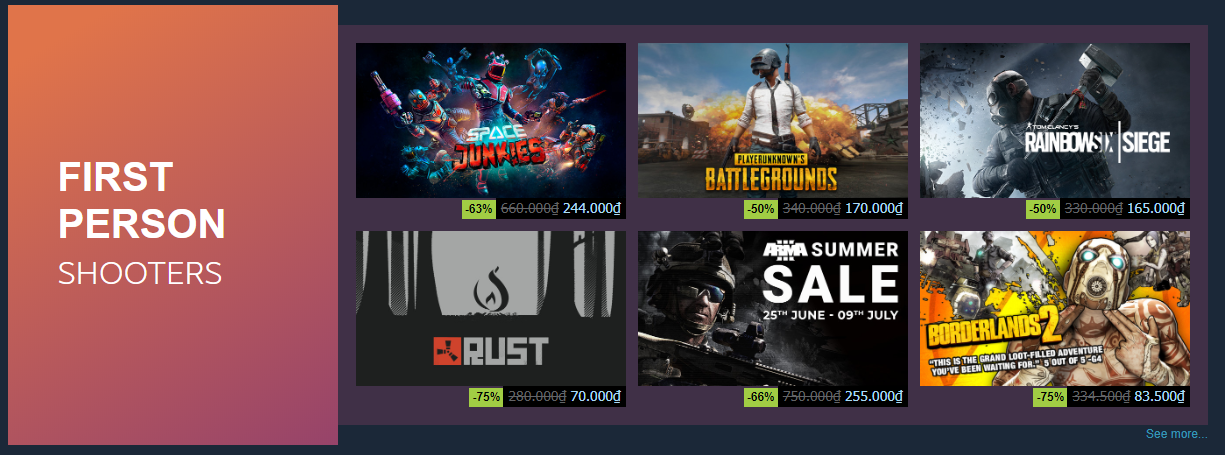 Theo đó sự kiện Steam Summer Sale 2019 sẽ mở cửa từ ngày hôm nay hôm nay 26/6 cho đến hết ngày 10/7, tức là game thủ sẽ có khoảng 2 tuần để lựa chọn những tựa game hay, hot, bom tấn AAA đang được giảm giá từ 50% cho đến 85%, cá biệt một số tựa game giảm giá lên tới 90%. Sẽ có rất nhiều tựa game được giảm giá trong sự kiện Steam Summer Sale 2019 lần này cho nên game thủ phải cân nhắc kỹ trước khi bị Steam “hút máu”. Đừng vội vàng móc ví của mình khi thấy một tựa game gán mác "-85%" màu xanh lá cây để rồi phải hối hận sau này.
