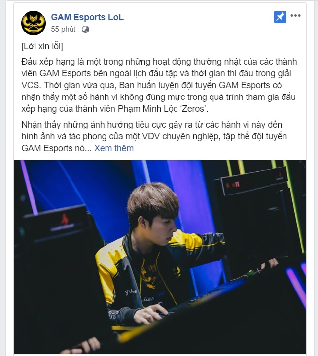 Đấu xếp hạng là một trong những hoạt động thường nhật của các thành viên GAM Esports bên ngoài lịch đấu tập và thời gian thi đấu trong giải VCS. Thời gian vừa qua, Ban huấn luyện đội tuyển GAM Esports có nhận thấy một số hành vi không đúng mực trong quá trình tham gia đấu xếp hạng của thành viên Phạm Minh Lộc ‘Zeros’.
