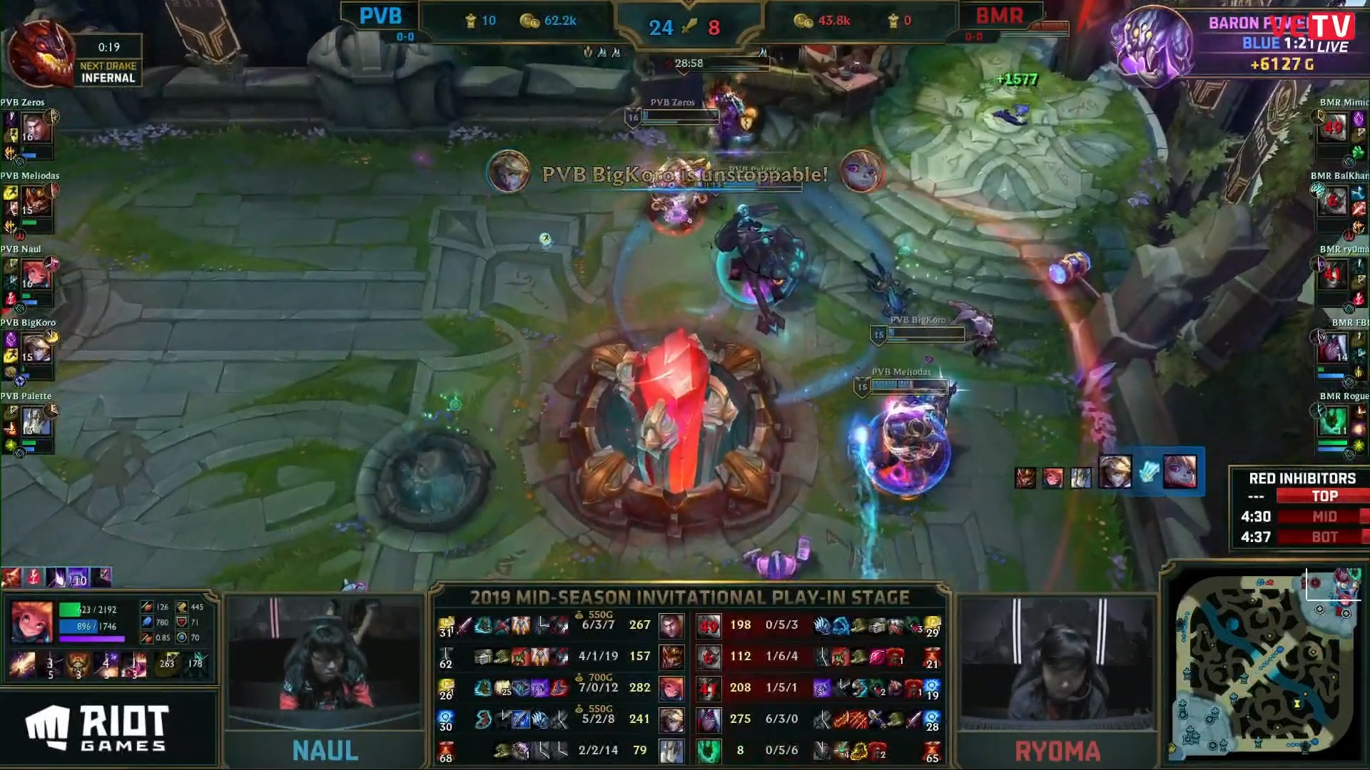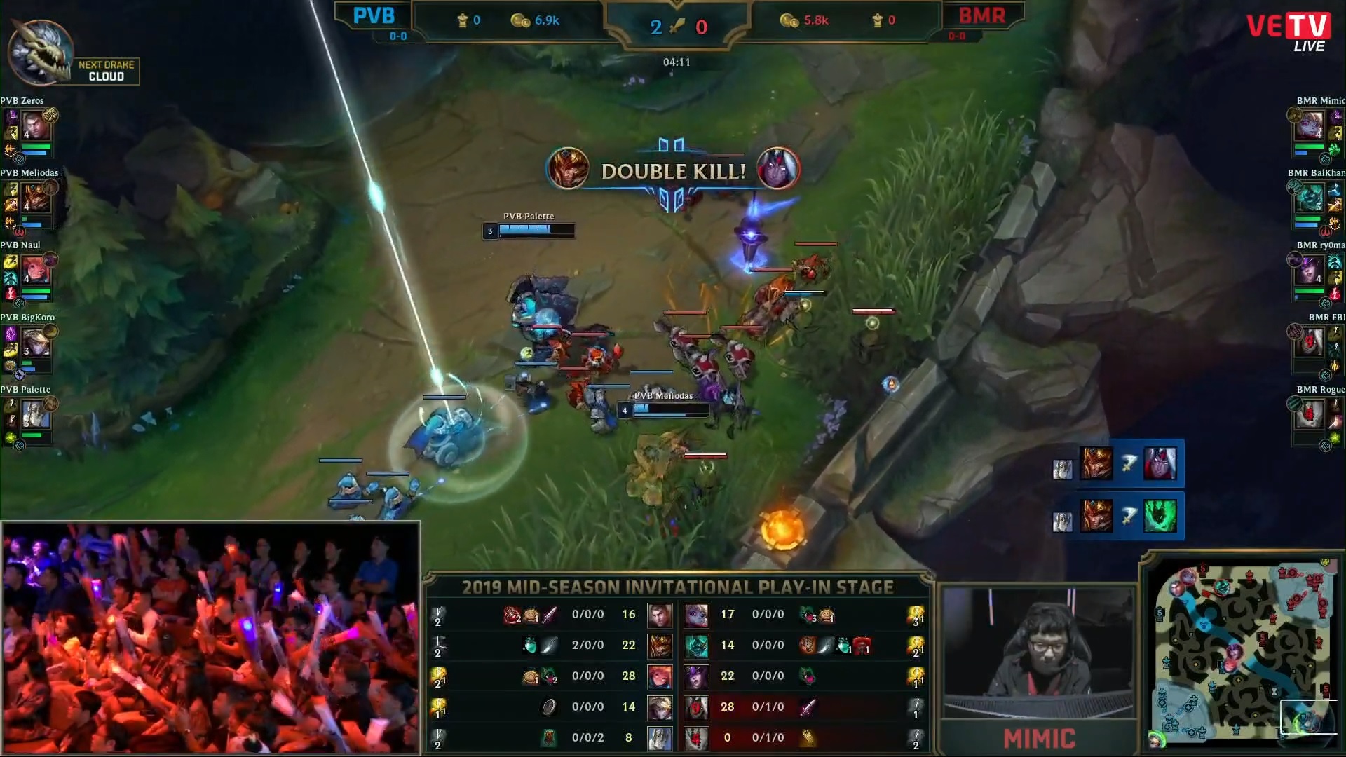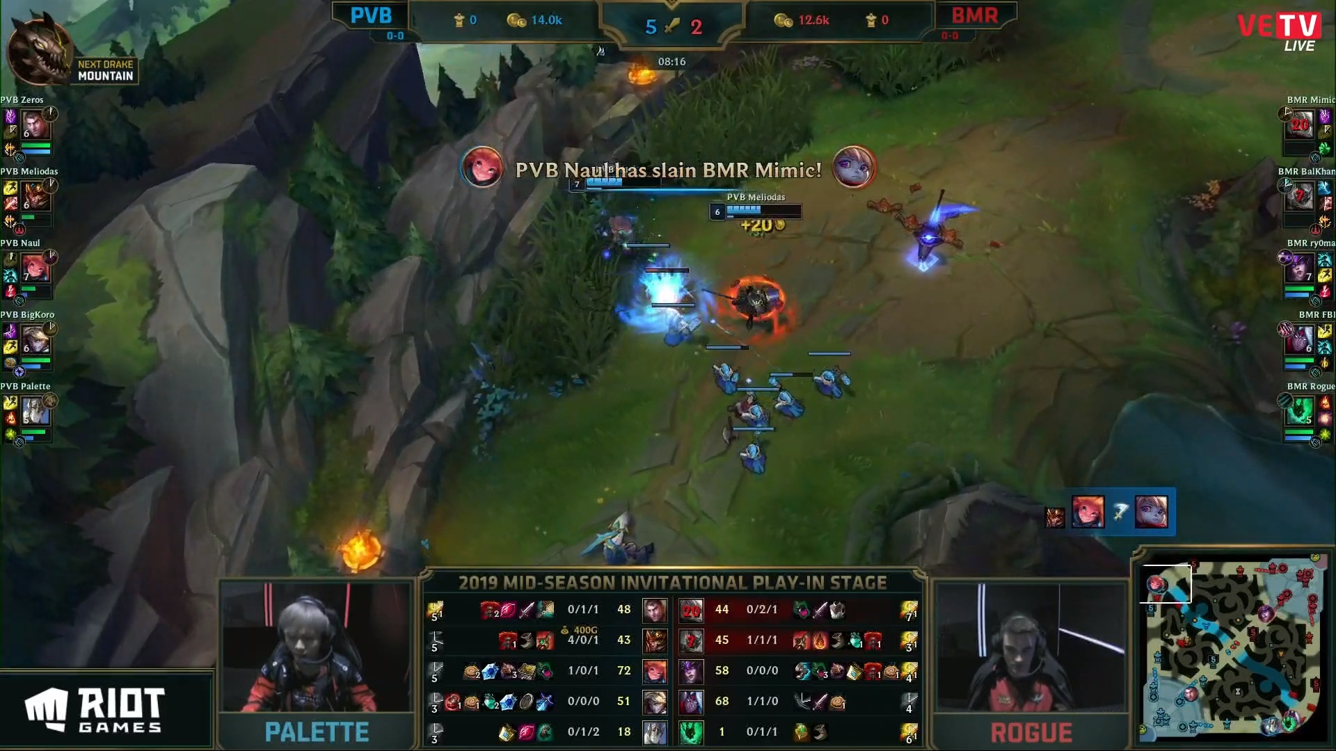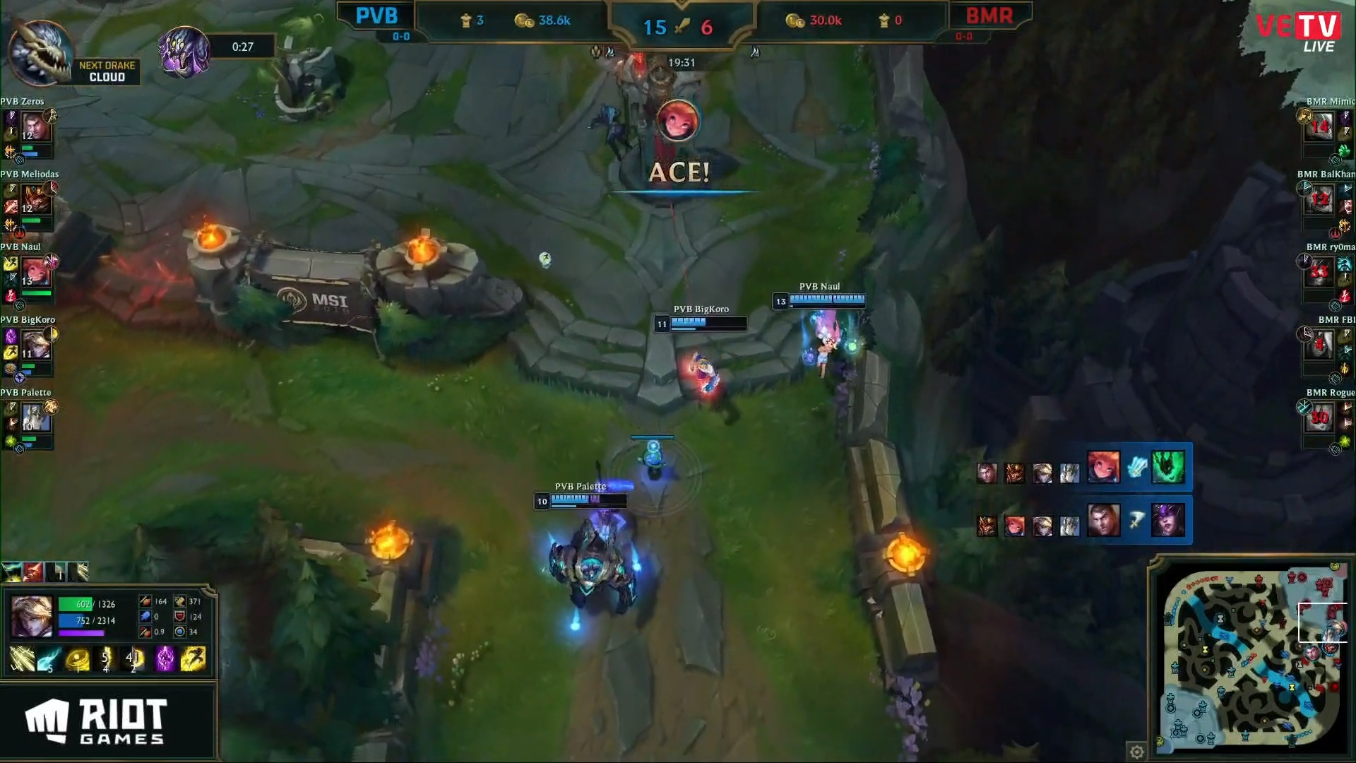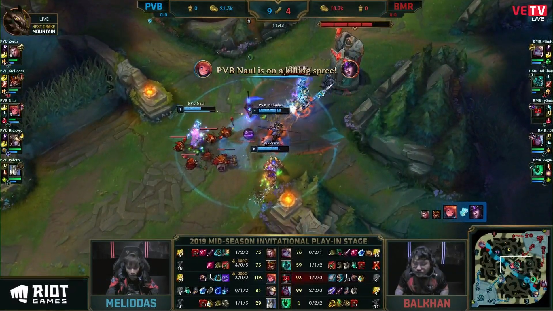PVB liên tục ép giao tranh với BMR, ép đối thủ tuân theo lối chơi của mình khi Jarvan của Meliodas đã khá mạnh và tốc độ đi rừng quá nhanh. Lợi thế về tiền đã lên tới con số 3 nghìn cho gương mặt đại diện của Việt Nam.