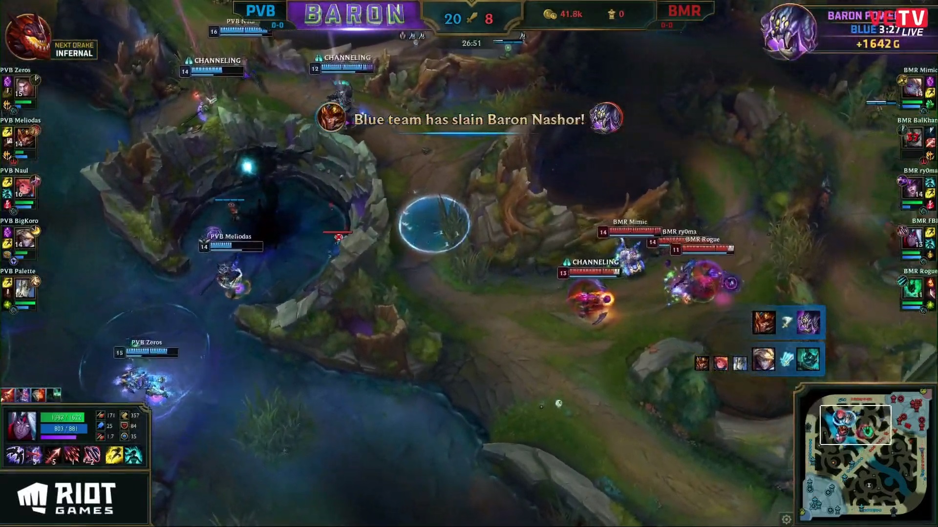 Phút 26, PVB cản bước thành công Hecarim của Balkhan của BMR trong việc cố gắng cướp Baron. Con Baron đầu tiên trong ván đấu thuộc về PVB, tiếp tục tăng lợi thế của chúng ta trước đối thủ.