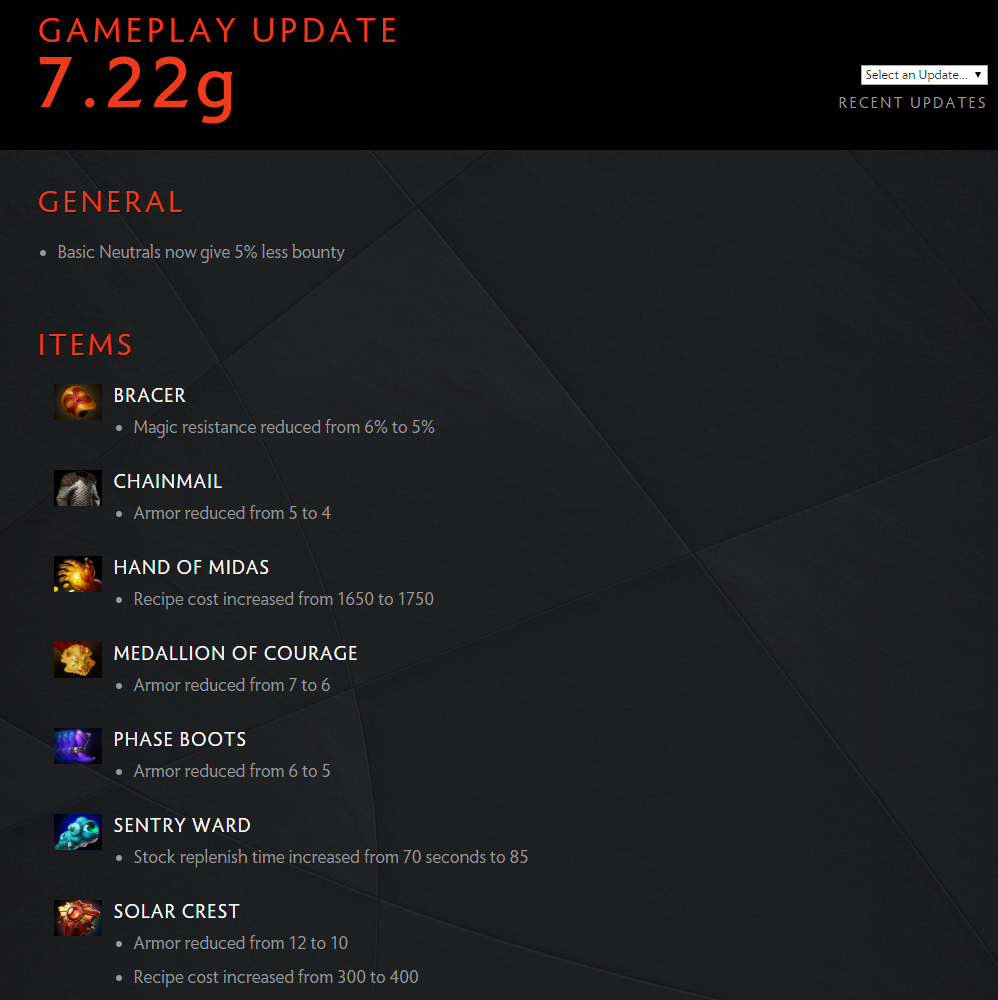 Rạng sáng ngày hôm nay theo giờ Việt Nam, Valve đã bất ngờ tung ra phiên bản cập nhật 7.22g nhằm giảm đi sức mạnh của những hero được cho là đang quá khỏe so với thời điểm hiện tại, cũng như nâng tầm sức mạnh của những hero không may bị bỏ rơi, hắt hủi tại kì TI9 vừa rồi.