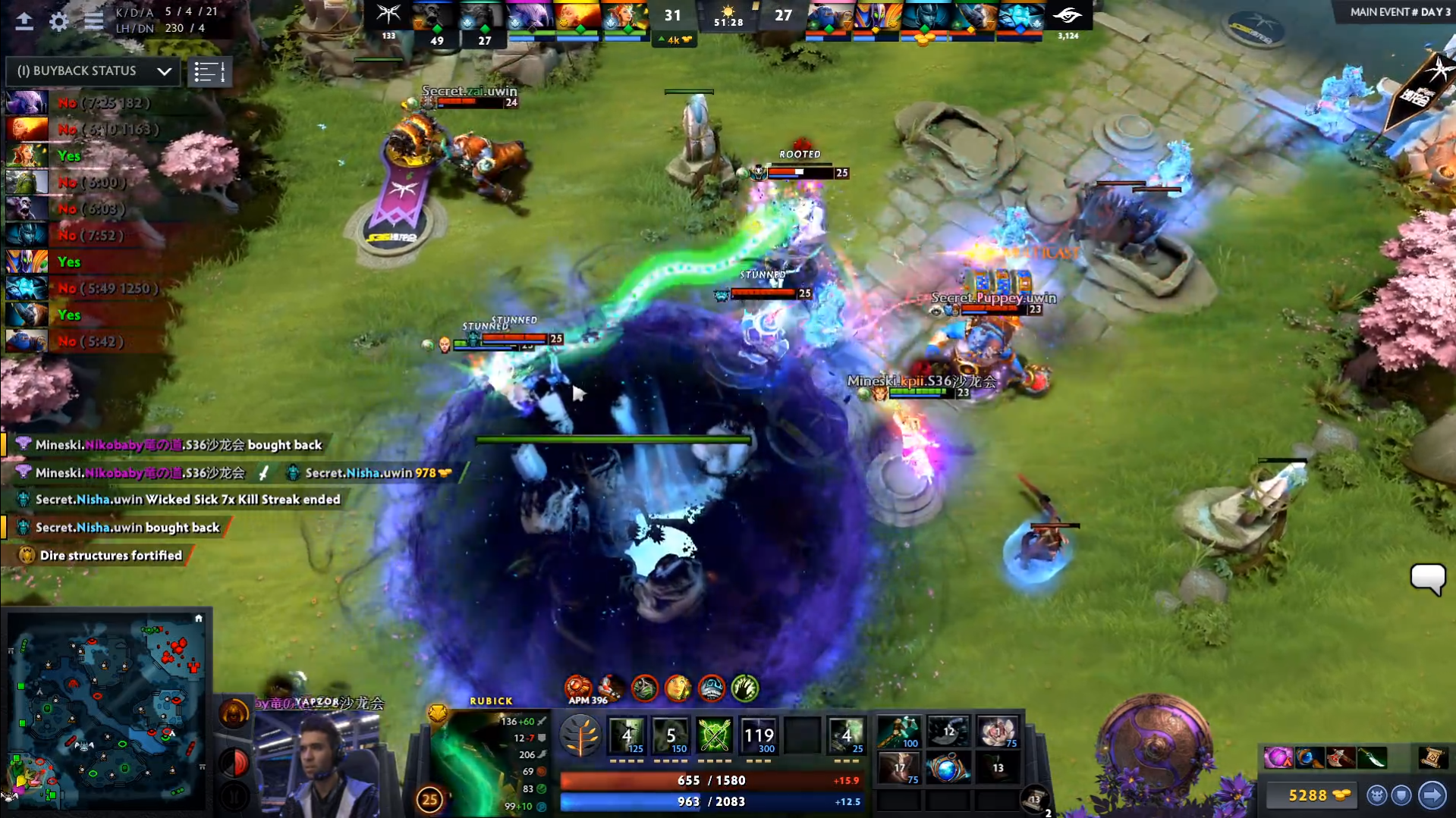 Rubick của Yapzor - người đã có những pha đánh cực hay trong suốt trận đấu với những màn cướp và sử dụng kĩ năng điệu nghệ, lại có một quyết định sai lầm ở những giây cuối cùng. Pha Chronosphere trúng 2 người đồng đội của Yapzor đã khiến cho thế trận đảo ngược trong tích tắc khi toàn thành viên bên phía Secret không còn buyback. Vì vậy, Secret đã không thể lật kèo thành công và trận đấu phải bước vào game đấu thứ 3 để tìm ra người chiến thắng.