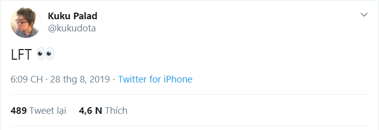 Ngày 28 tháng 6, 3 ngày sau khi TI9 kết thúc, Kuku bỗng dưng đăng tải dòng trạng thái lên Twitter cá nhân của mình với dòng chữ duy nhất: "LFT".