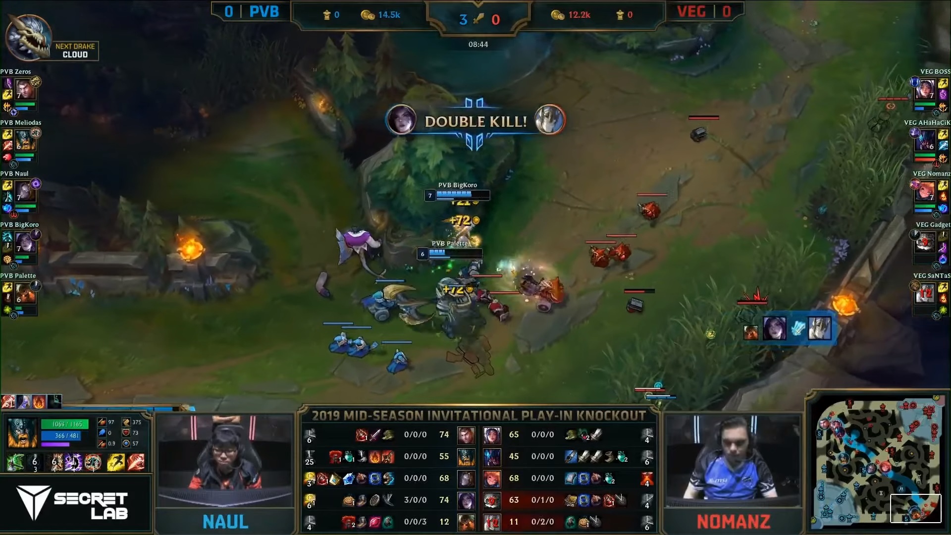 Game 1 có lẽ là lúc cả 2 đội tuyển đưa ra những chiến thuật tốt nhất của mình. Và đúng như dự đoán, VEG vẫn tiếp tục sử dụng những vị tướng Pháp Sư cho vai trò Xạ Thủ, và Heimerdinger đã được lựa chọn cho Gadget. Trong khi đó, PVB lấy Jayce, Kaisa và Nautilus – những vị tướng thuận tay cho các thành viên của mình.