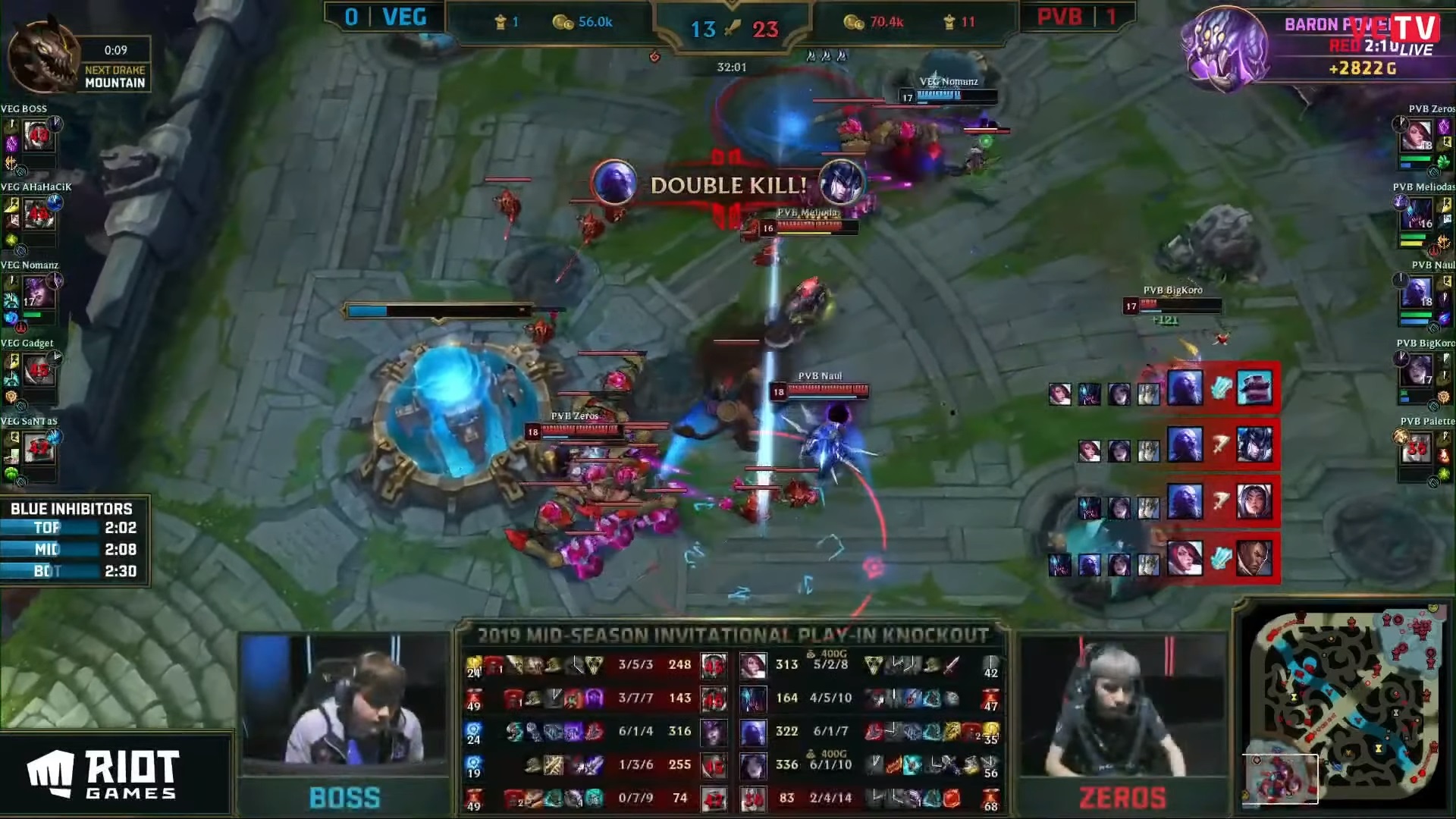 Tuy nhiên, một pha giao tranh ở phút 23 đã khiến thế trận xoay vần khi PVB hạ gục được 4 thành viên của VEG, sau đó ăn con Baron giúp tăng rất nhiều lợi thế cho bản thân. Lợi thế đó khiến cho những vị tướng của PVB có sức mạnh vượt quá tầm kiểm soát của đối thủ và bắt họ thất bại vào phút 32.