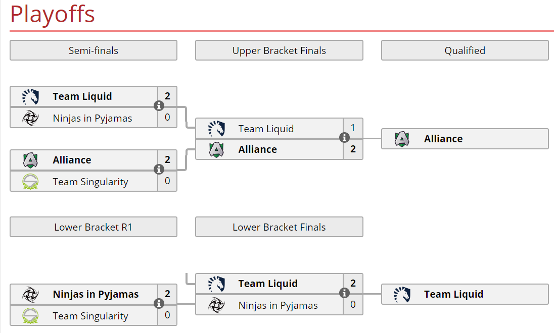 Đây sẽ là giải đấu thứ 2 trong năm nay mà bộ 3 này cặp kè nhau và chắc chắn NiP hơn ai hết rất muốn giành chiến thắng để khẳng định sức mạnh của mình trong khu vực. Alliance và Liquid thì cần những giải đấu như thế này để tập dượt nhiều hơn trước khi bộ 3 "tay to" của khu vực châu Âu là stack của Kuroky, team Secret và OG trở lại ở giải đấu Major thứ 2. Hơn nữa, duyên phận tiếp tục đưa Alliance, Liquid và NiP tái ngộ tại ESL One Hamburg diễn ra vào tuần sau. Có vẻ như sự "vô tình" thú vị này sẽ giúp chúng ta tìm ra đội nào sẽ là đội mạnh nhất trong bộ 3 "ngựa ô" của khu vực châu Âu