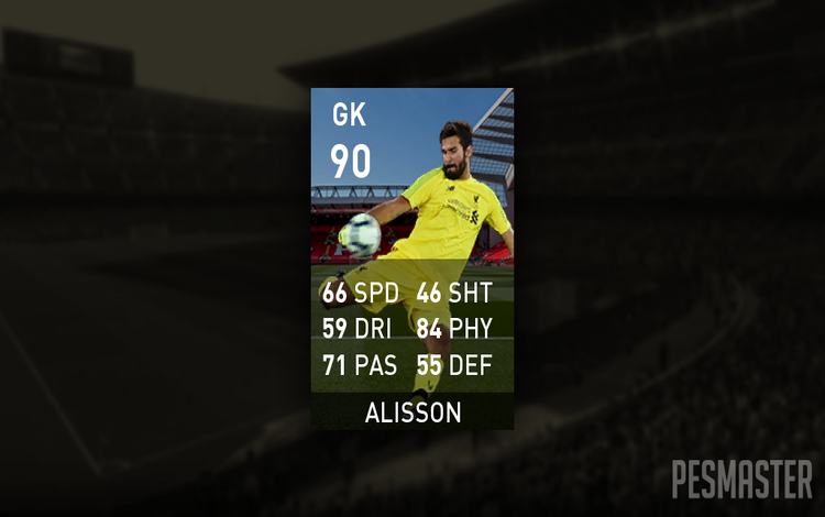 Alisson là thủ thành số một trong khung gỗ của Liverpool lẫn đội tuyển quốc gia Brasil. Phong độ xuất sắc của anh là một trong những nhân tố quan trọng dẫn đến chức vô địch Champions League 2018 của đội bóng thành phố cảng. Đó cũng là lí do mà anh sở hữu chỉ số thủ môn lên tới 95, với hai chỉ số cao nhất là tập trung (97) và phản xạ (97).