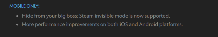 - Đã có Steam Invisible mode để bạn có thể chơi game mà không bị sếp bắt gặp.