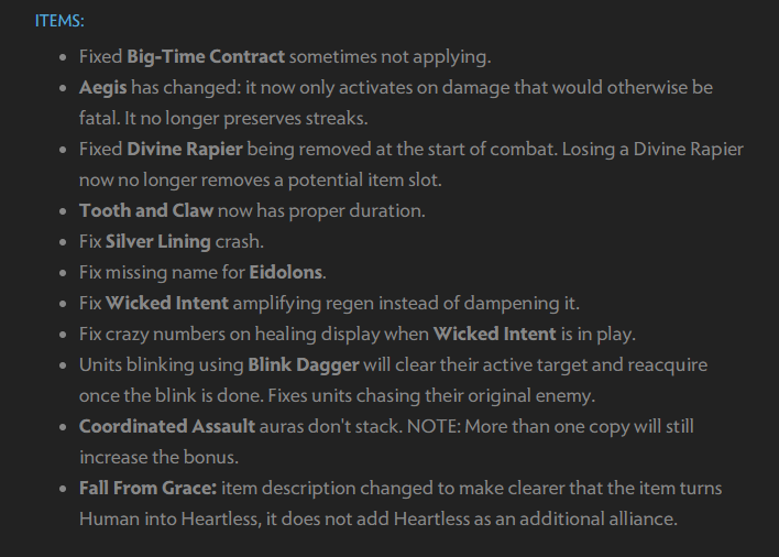 - Thay đổi Aegis: Chỉ kích hoạt khi lượng sát thương nhận vào đủ để kết liễu. Và cũng không còn giữ streak nếu bạn sử dụng nó